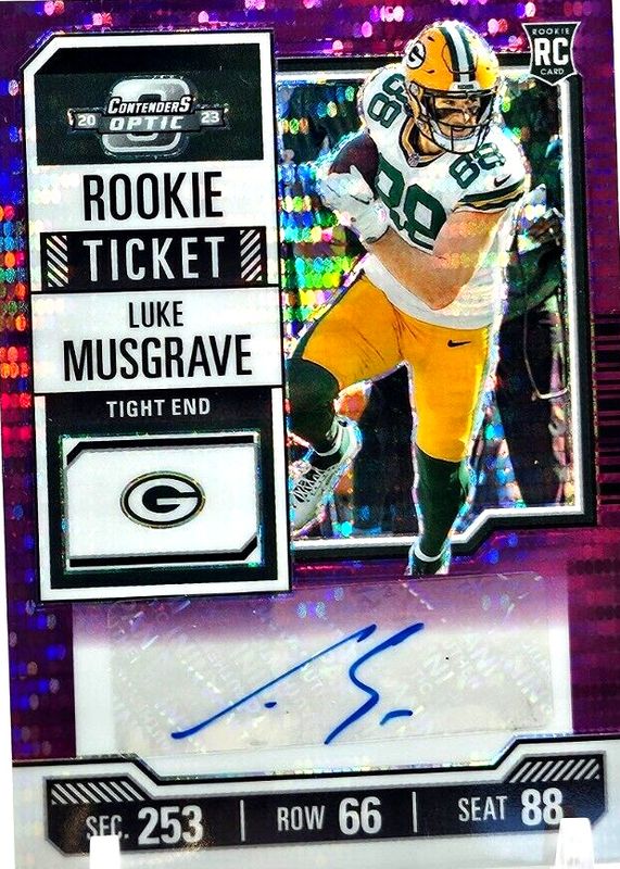 Best Prices Available For Sale of Luke Musgrave 2023 Contenders Optic #183 Rookie Ticket Auto - Purple Pulsar /21