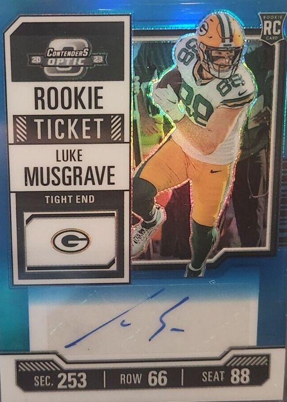 LUKE MUSGRAVE 2023 PANINI CONTENDERS OPTIC ROOKIE TICKET TEAL AUTO /99 Packers