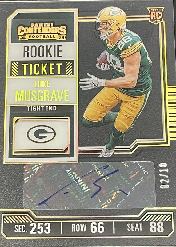This card is 1 of 23 Luke Musgrave's card variations in the 2023 Contenders set being tracked by Sports Card Investor, including Rookie Ticket Auto, Rookie Ticket Auto - Opening Kickoff Ticket, Rookie Ticket Auto - Red Zone Ticket, Rookie Ticket Auto - Ticket Stub (/88), and Rookie Ticket Auto Variation.