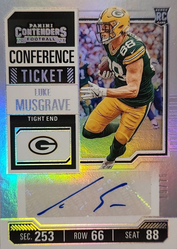 LUKE MUSGRAVE 2023 PANINI CONTENDERS CONFERENCE TICKET ROOKIE AUTO #/75 PACKERS