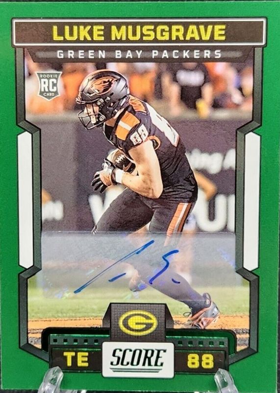 2023 Score Football Luke Musgrave Rookie Auto Green Parallel RC #340 Packers