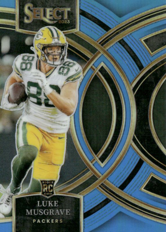 Luke Musgrave 2023 Panini Select Light Blue Prizm Premier /99 Rookie RC Packers