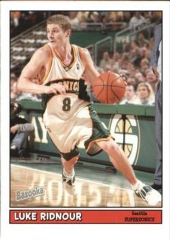 The Luke Ridnour 2005 Bazooka #48 Base card is 1 of 5 Luke Ridnour's card variations in the 2005 Bazooka set being tracked by Sports Card Investor, including Gold, Minis, Blue /5, and All Star Relics.