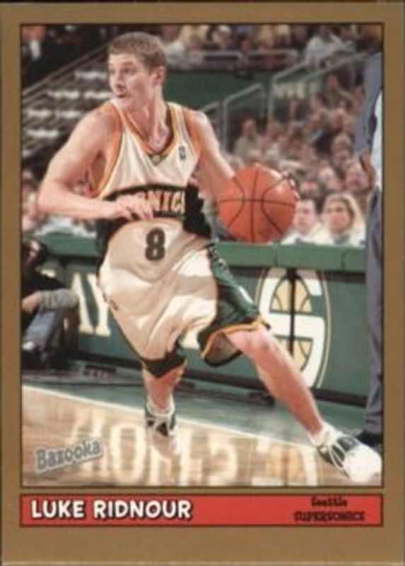 The Luke Ridnour 2005 Bazooka #48 Gold card is 1 of 5 Luke Ridnour's card variations in the 2005 Bazooka set being tracked by Sports Card Investor, including Base, Minis, Blue /5, and All Star Relics.