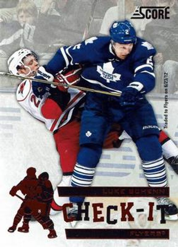The Luke Schenn 2012 Score #C16 Check It card is 1 of 4 Luke Schenn's card variations in the 2012 Score set being tracked by Sports Card Investor, including Base, Black Ice, and Gold Rush.