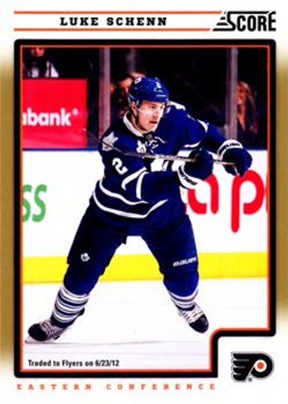 The Luke Schenn 2012 Score #351 Gold Rush card is 1 of 4 Luke Schenn's card variations in the 2012 Score set being tracked by Sports Card Investor, including Base, Black Ice, and Check It.