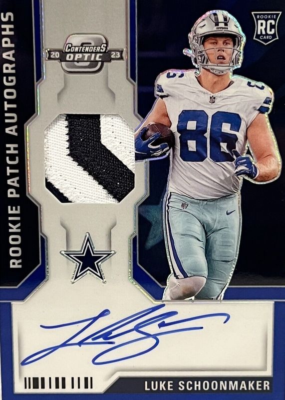 2023 Contenders Optic LUKE SCHOONMAKER Rookie Patch Auto COWBOYS BLUE /50