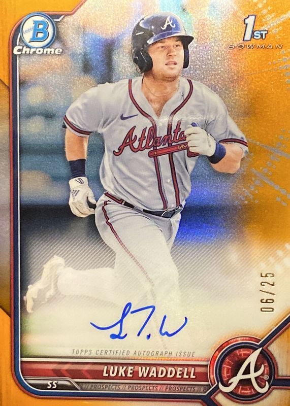 LUKE WADDELL 2022 BOWMAN CHROME 1ST ORANGE AUTOGRAPH AUTO /25