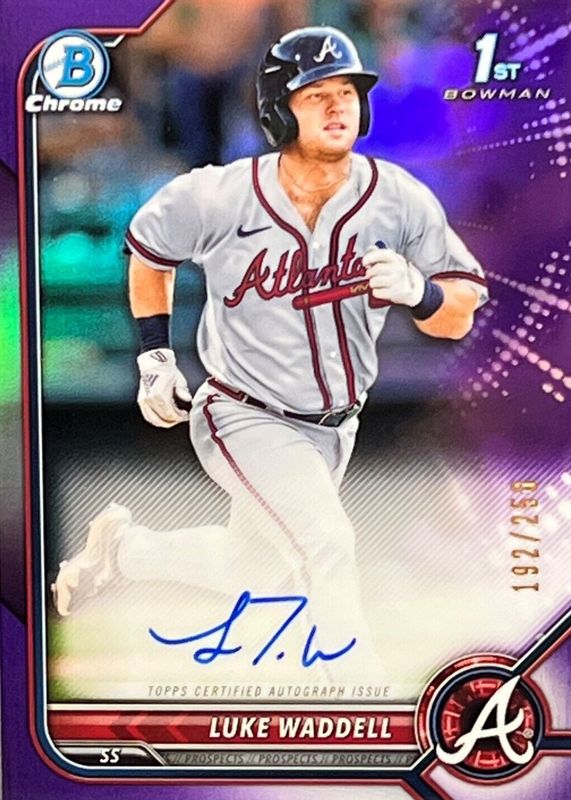 2022 Bowman Chrome Purple Refractor Luke Waddell Auto 55/250 Braves #CPA-LW 1st