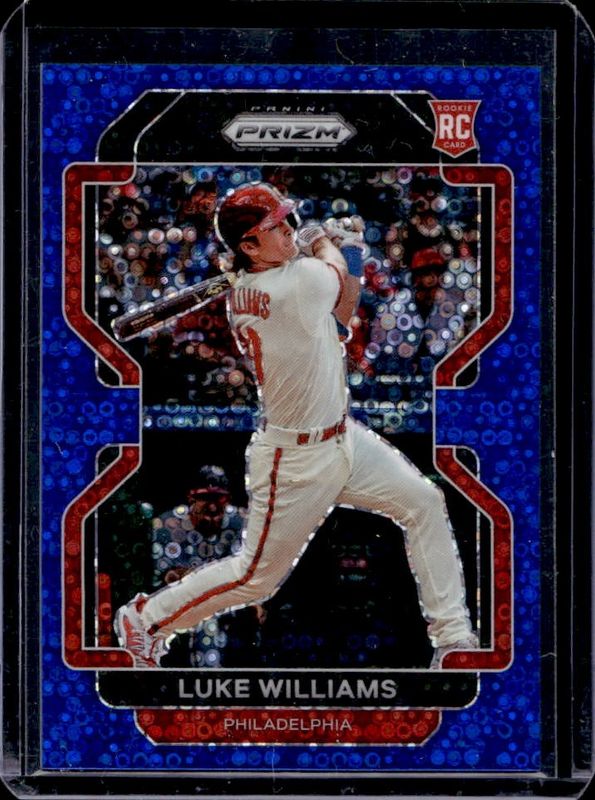 The Luke Williams 2022 Prizm #37 Blue Donut Circles /199 Rookie card is 1 of 64 Luke Williams' card variations in the 2022 Prizm set being tracked by Sports Card Investor, including Base, Blue, Blue Velocity, Carolina Blue, and Cosmic Haze.