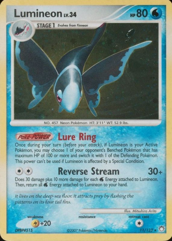 Lumineon 2007 Diamond & Pearl: Mysterious Treasures #011/123 Holo RAW TCG (LIGHTLY PLAYED) Price Guide