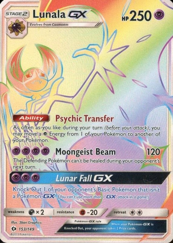 Lunala GX - 153/149 Sun & Moon Rainbow Pokemon - NM