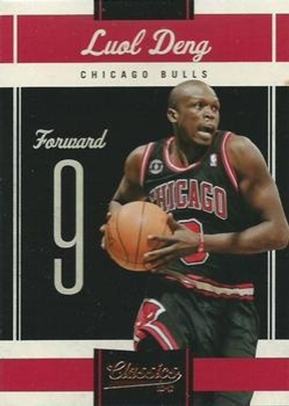The Luol Deng 2010 Classics #69 Base /999 card is 1 of 12 Luol Deng's card variations in the 2010 Classics set being tracked by Sports Card Investor, including Timeless Tributes Silver /250, Timeless Tributes Gold /100, Timeless Tributes Platinum /25, Timeless Tributes Black /1, and Dress Code.