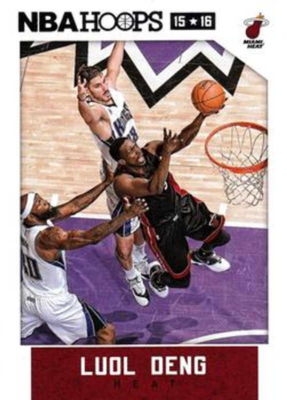 The Luol Deng 2015 Hoops #54 Base card is 1 of 9 Luol Deng's card variations in the 2015 Hoops set being tracked by Sports Card Investor, including Gold, Green, Red Back, Blue /399, and Red /299.