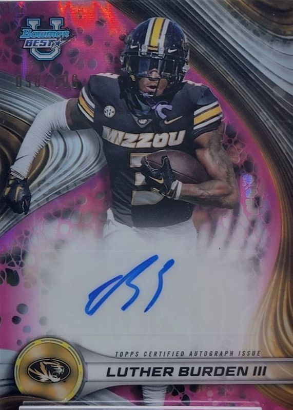 Best Prices Available For Sale of Luther Burden III 2024 Bowman Best University #BOA-LB Best of 2024 Autographs - Pink Lava Refractor /100