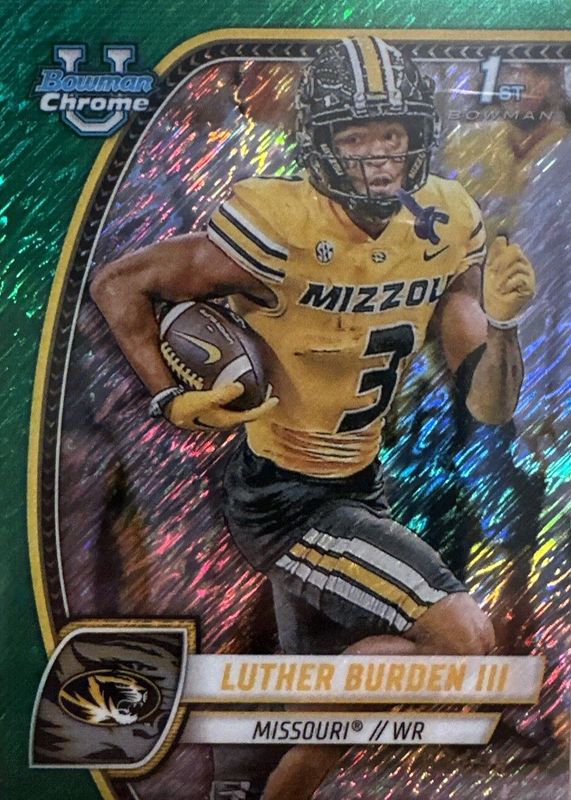 Best Prices Available For Sale of Luther Burden III 2024 Bowman Chrome University #123 Green Shimmer Refractor /99 (1st)