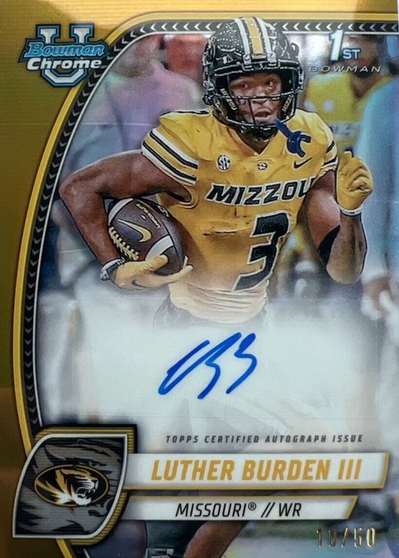 2024 Bowman Chrome U LUTHER BURDEN Auto Gold Refractor /50 1st RC Missouri Bears