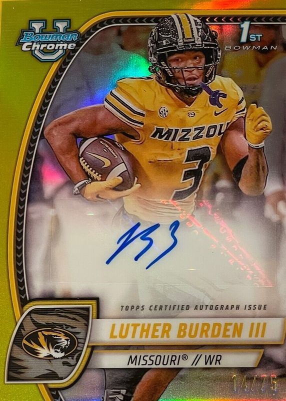 2024 Bowman Chrome U Luther Burden III 1st Yellow Refractor Auto /75 Missouri