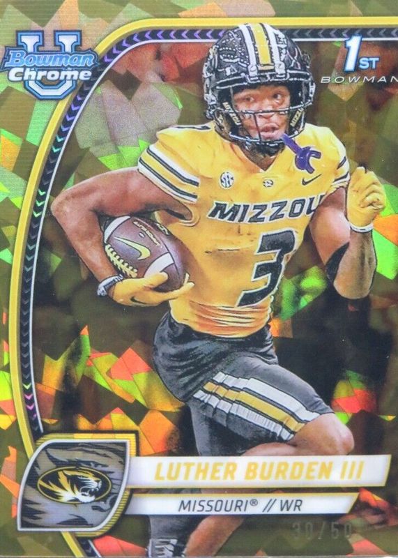2024 Bowman Chrome U Sapphire Luther Burden III Gold Sapphire /50 Newest NFL WR1