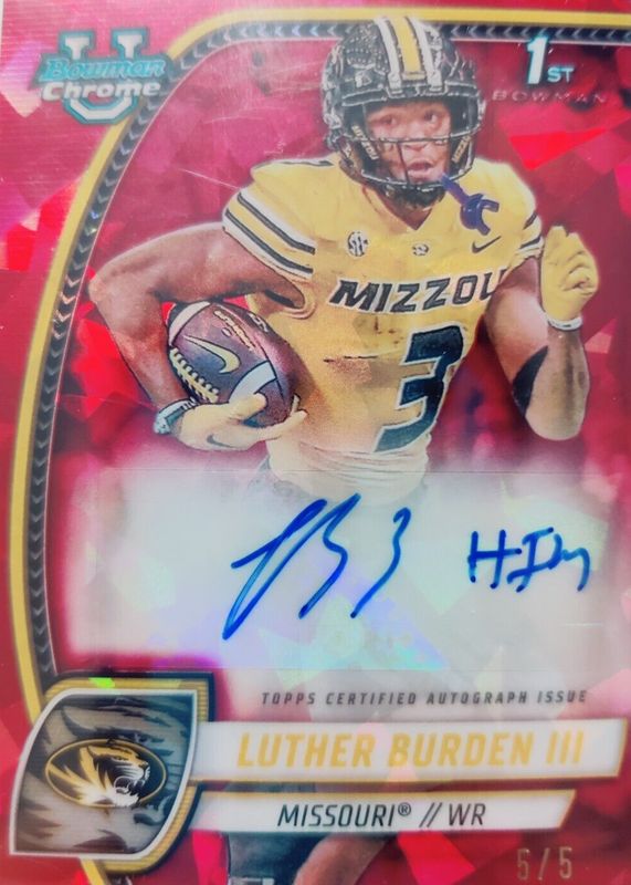 Luther Burden III 2024 Bowman Chrome University Sapphire Edition #PA-LBU Prospect Auto - Red /5 (1st) RAW Price Guide