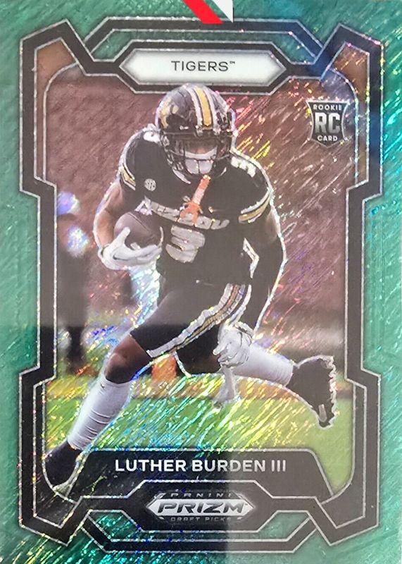 The Luther Burden III 2024 Prizm Draft Picks #198 Green Shimmer /8 card in Raw condition has not changed in price in the last 30 days and was last sold for $125.00 .