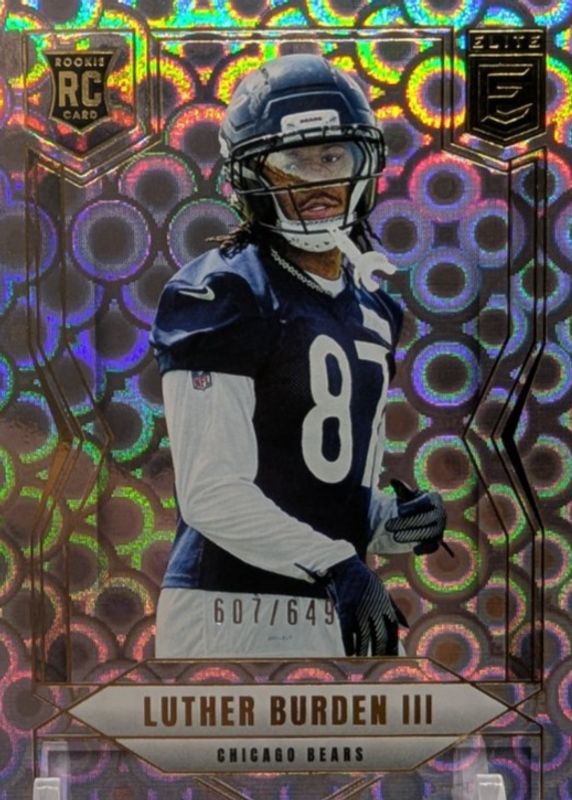 The Luther Burden III 2025 Elite #118 Lavender Pyramids /649 Rookie card in Raw condition has not changed in price in the last 30 days and was last sold for $19.99 .