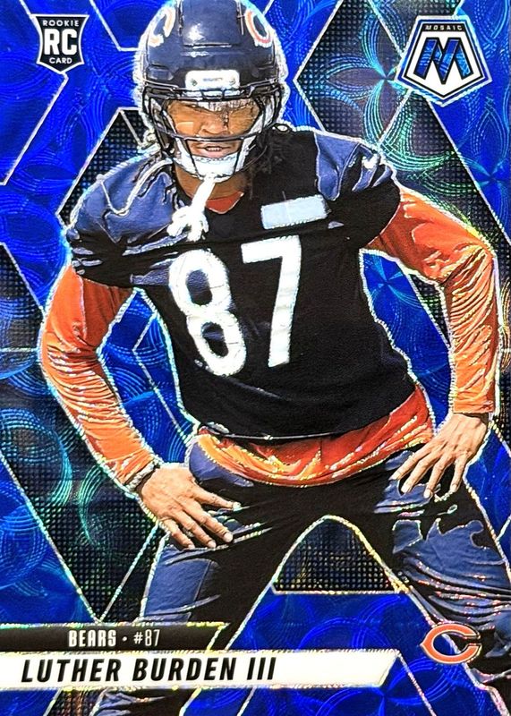 The Luther Burden III 2025 Mosaic #383 Blue Scope Rookie card in Raw condition has moved up $3.21 (+97.6%) in the last 30 days and was last sold for $6.50 .