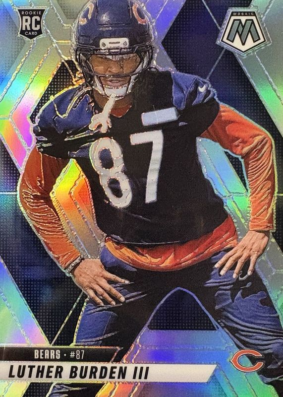 The Luther Burden III 2025 Mosaic #383 Silver Rookie card in Raw condition has moved up $0.60 (+59.8%) in the last 30 days and was last sold for $1.59 .