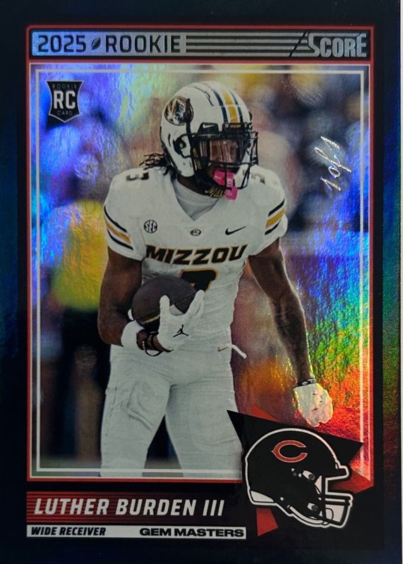 The Luther Burden III 2025 Score #18 Gem Masters /1 Rookie card in Raw condition has not changed in price in the last 30 days and was last sold for $280.00 .