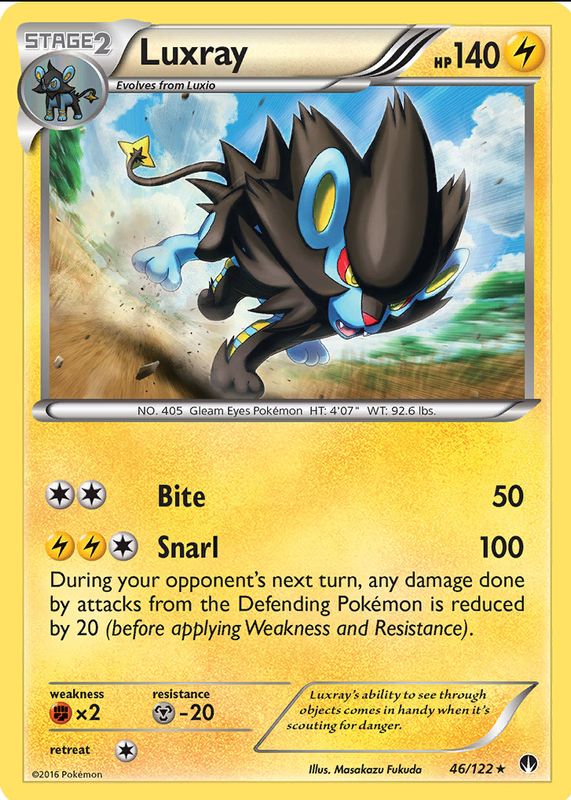 The Luxray 2016 XY: BREAKpoint #046/122 Base card in Raw TCG (Near Mint) condition has moved down -$1.29 (-43.1%) in the last 30 days and was last sold for $1.70 .