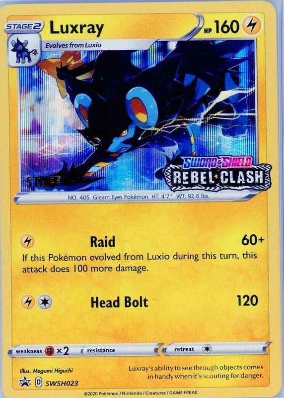 Luxray 2020 Sword & Shield: Black Star Promo #SWSH023 Build & Battle Box (Rebel Clash) (Staff) RAW TCG (NEAR MINT) Price Guide
