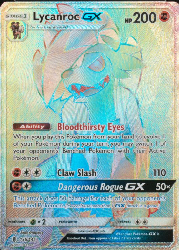 Pokemon - Lycanroc GX - 156/145 - Secret Rare - Sun & Moon Guardians Rising - NM