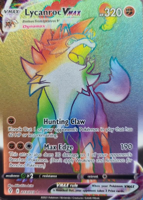 Lycanroc VMAX (Secret) Rainbow Rare Holo SWSH07: Evolving Skies 213/203 NM