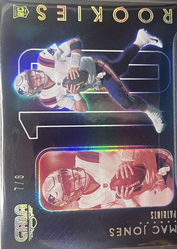 The Mac Jones 2021 Chronicles #GR-MJO Gala /8 Rookie card in Raw condition has not changed in price in the last 30 days and was last sold for $538.00 .