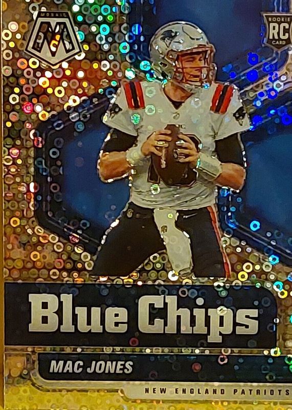 The Mac Jones 2021 Mosaic #5 Blue Chips - No Huddle Rookie card in Raw condition has not changed in price in the last 30 days and was last sold for $5.50 .