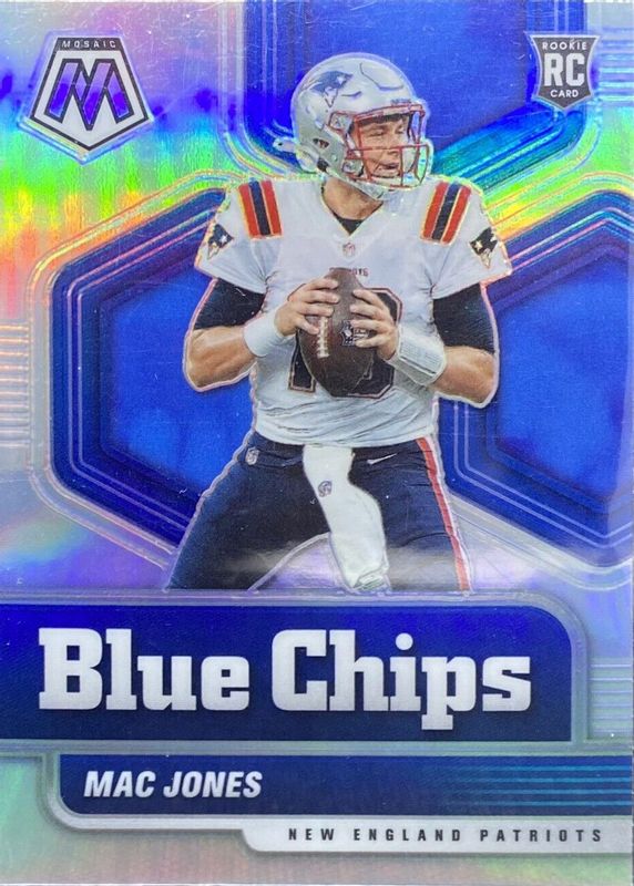Mac Jones 2021 Panini NFL Mosaic Silver Mosaic Blue Chips Insert RC Patriots