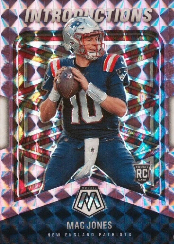 The Mac Jones 2021 Mosaic #I-5 Introductions - Purple /49 Rookie card in Raw condition has not changed in price in the last 30 days.