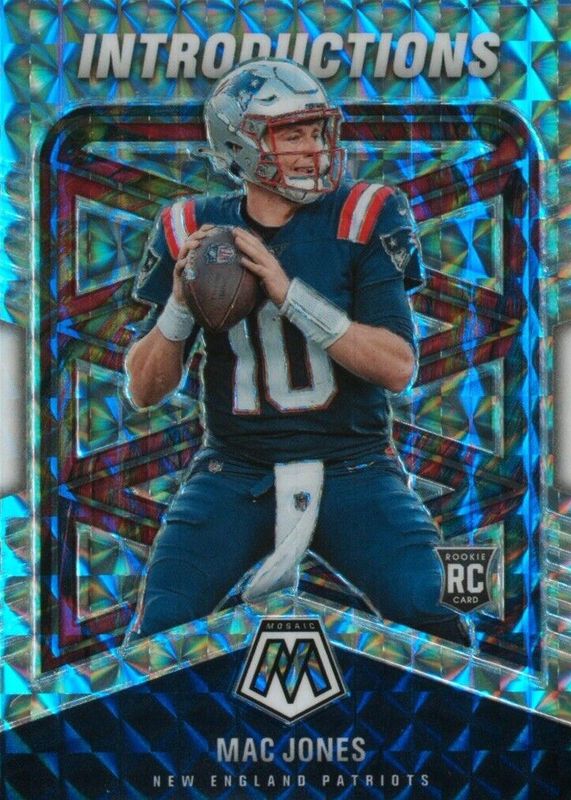 The Mac Jones 2021 Mosaic #I-5 Introductions - White /25 Rookie card in Raw condition has not changed in price in the last 30 days and was last sold for $1.00 .