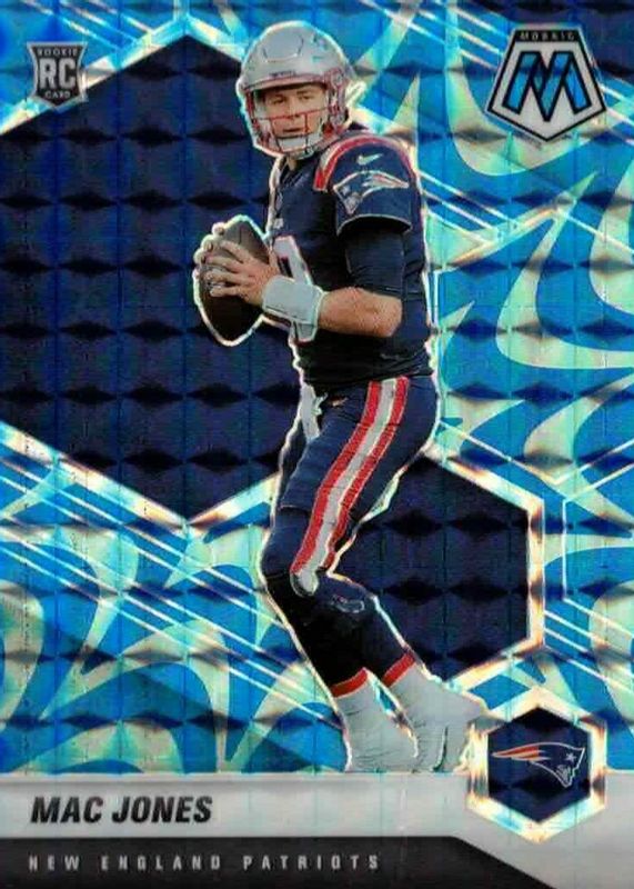 The Mac Jones 2021 Mosaic #306 Reactive Blue Rookie card in Raw condition has moved down -$0.72 (-42.1%) in the last 30 days and was last sold for $0.99 .