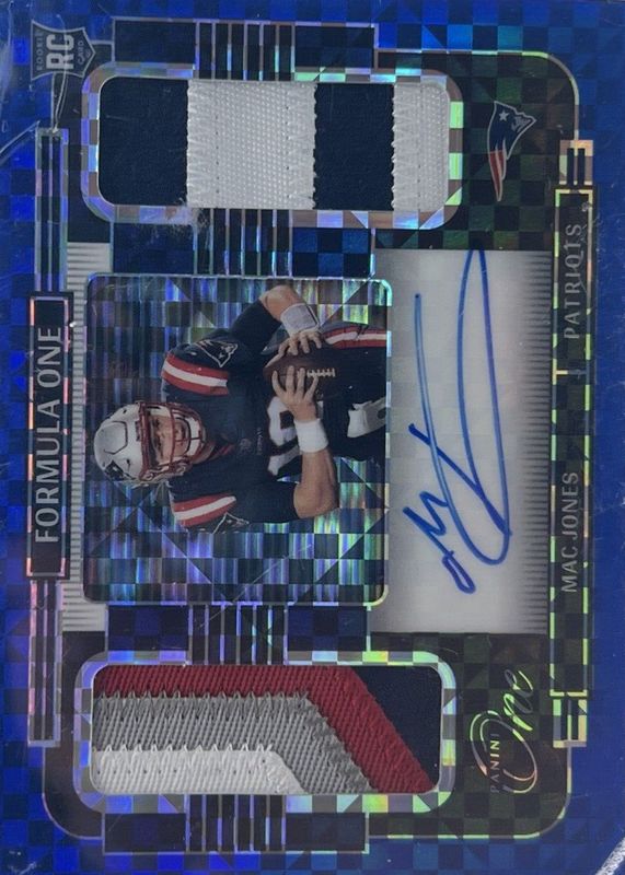 2021 Panini One Mac Jones Blue Formula One RPA 4/25 Dual patches AUTO 4 CLR RC