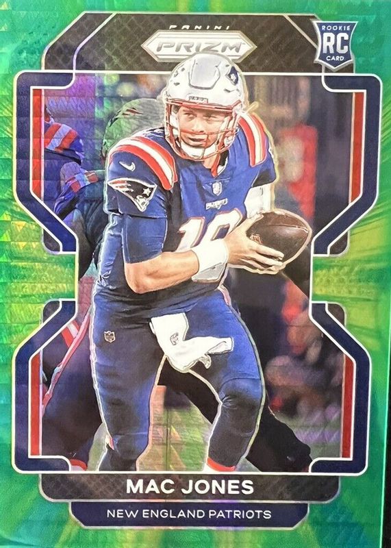 This card is 1 of 92 Mac Jones' card variations in the 2021 Prizm set being tracked by Sports Card Investor, including Base, Disco, Green, Green Ice, and Lazer.