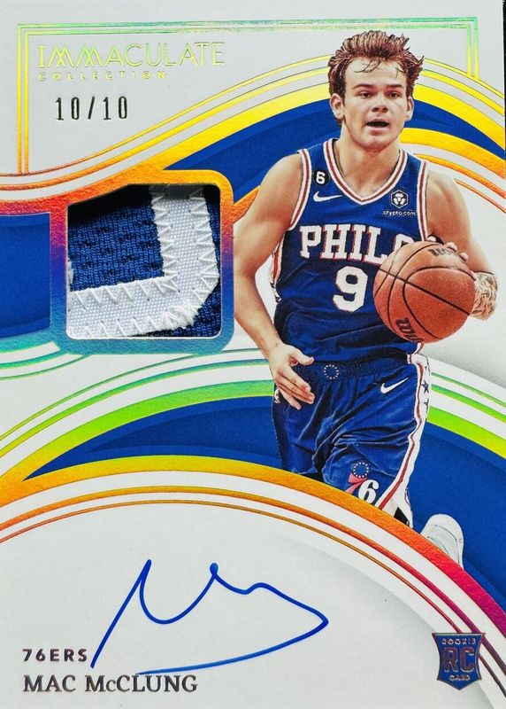 This card is 1 of 16 Mac McClung's card variations in the 2022 Immaculate set being tracked by Sports Card Investor, including Base /99, Red /49, Gold /10, Premium Patch Autographs, and Premium Patch Autographs - FOTL.