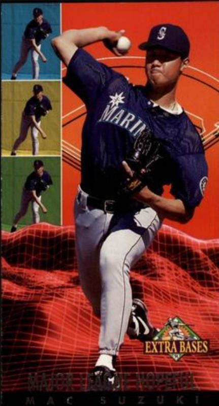 The Mac Suzuki 1994 Fleer Extra Bases #8 Major League Hopefuls Rookie card is 1 of 2 Mac Suzuki's card variations in the 1994 Fleer Extra Bases set being tracked by Sports Card Investor, including Base.