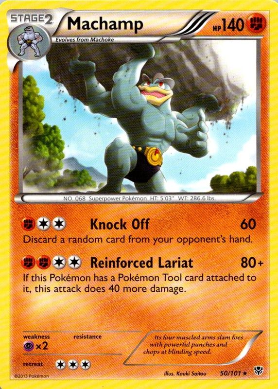 The Machamp 2013 Black & White: Plasma Blast #050/101 Base card in Raw TCG (Lightly Played) condition has not changed in price in the last 30 days and was last sold for $2.00 .