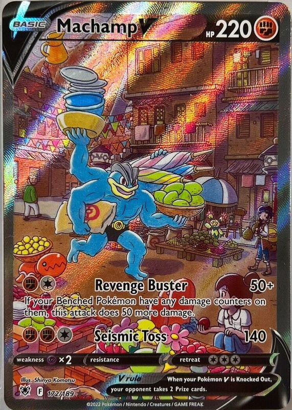 The Machamp V 2022 Sword & Shield: Astral Radiance #172/189 Holo (Alternate Full Art) card in Raw TCG (Lightly Played) condition has not changed in price in the last 30 days and was last sold for $93.19 .