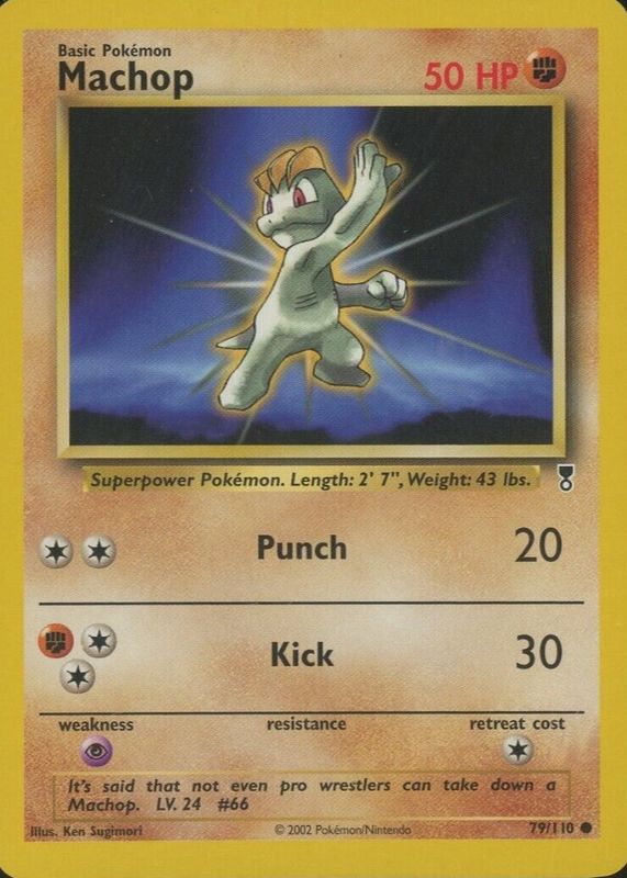 The Machop 2002 Legendary Collection #79 Base card in Raw TCG (Near Mint) condition has not changed in price in the last 30 days and was last sold for $1.00 .