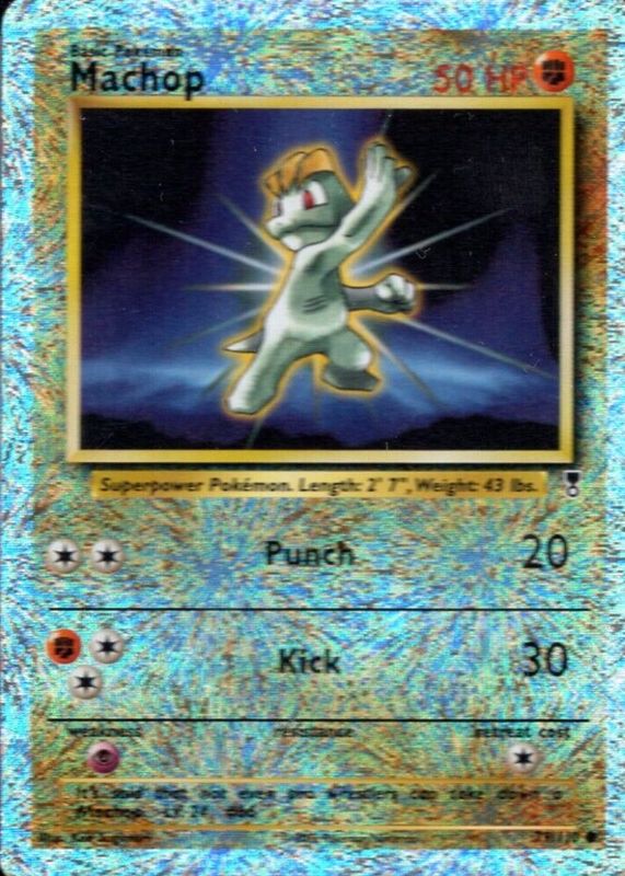 The Machop 2002 Legendary Collection #79 Reverse Holo card in Raw TCG (Near Mint) condition has moved down -$21.25 (-29.5%) in the last 30 days and was last sold for $50.75 .