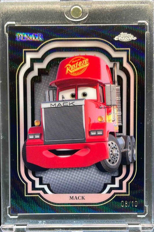 The Mack 2024 Topps Chrome Disney #121 Black Wave Refractor /10 card is 1 of 15 Mack's card variations in the 2024 Topps Chrome Disney set being tracked by Sports Card Investor, including Base, Refractor, Purple Refractor /199, Purple & Green Pulsar /150, and Black & White Speckle /101.