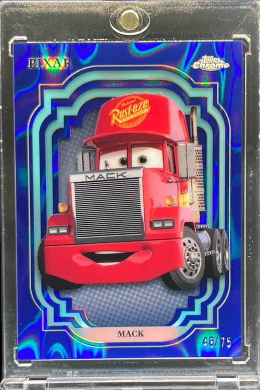 The Mack 2024 Topps Chrome Disney #121 Blue Lava Refractor /75 card is 1 of 15 Mack's card variations in the 2024 Topps Chrome Disney set being tracked by Sports Card Investor, including Base, Refractor, Purple Refractor /199, Purple & Green Pulsar /150, and Black & White Speckle /101.
