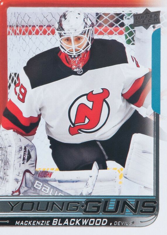 The Mackenzie Blackwood 2018 Upper Deck #210 Young Guns Base Rookie card in Raw condition has moved up $3.71 (+375%) in the last 30 days and was last sold for $4.70 .